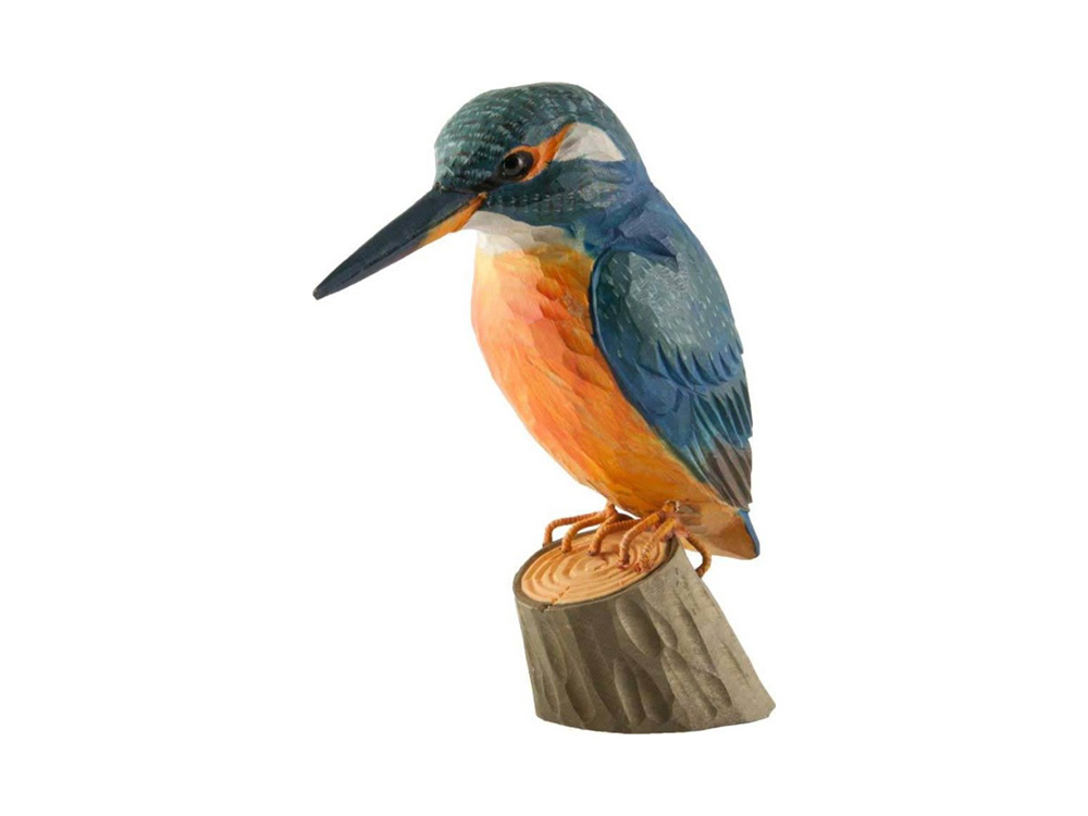 Martin-pêcheur en bois au design traditionnel. Le martin-pêcheur est représenté grandeur nature et peint avec une peinture écologique.