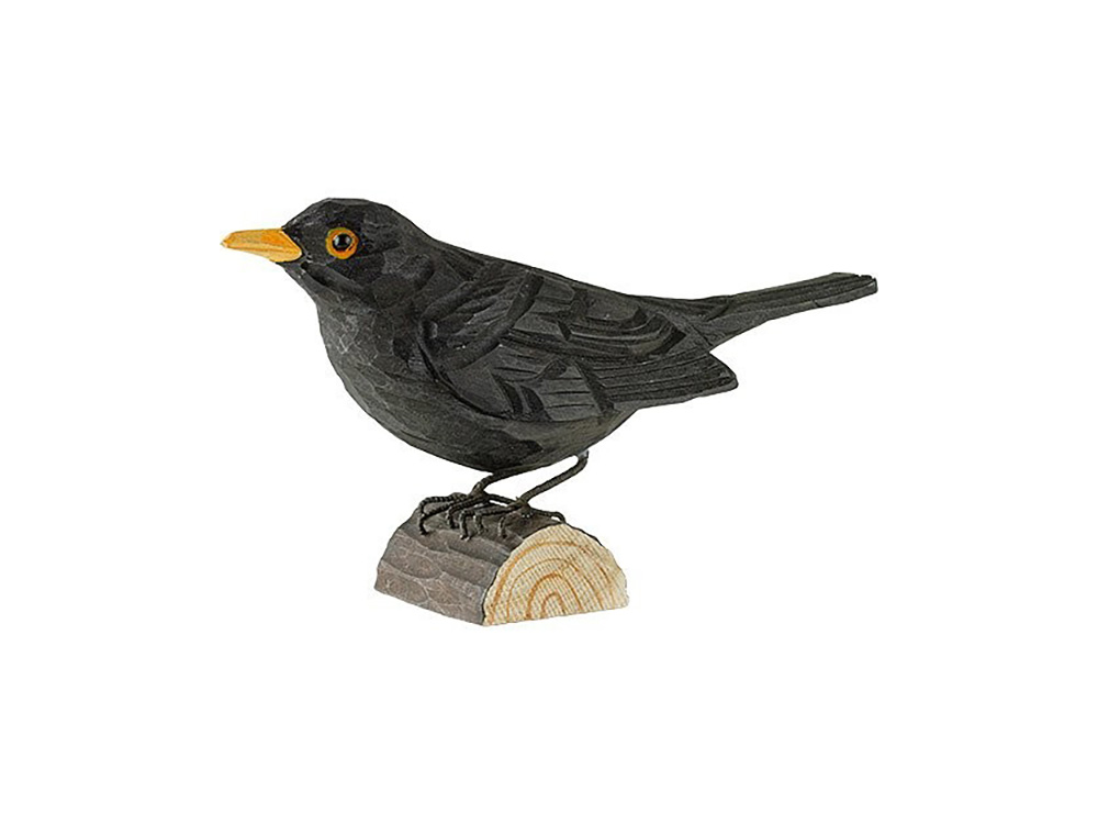 Merle en bois de conception traditionnelle. Le merle est représenté grandeur nature et peint avec une peinture écologique. La figurine est accompagnée d’un bâton avec lequel l’oiseau peut être inséré dans un pot de fleurs pour la décoration.