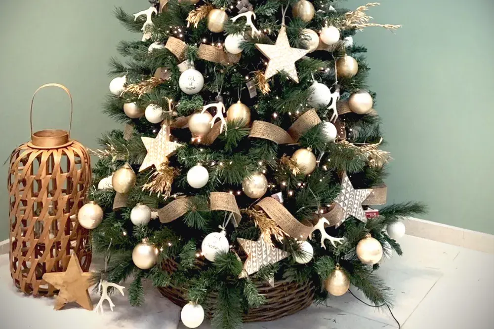 We adviseerden je al over de juiste plaats voor je kerstboom en gaven daarbij een paar algemene versiertips. Die passen we nu toe op deze kerstboom van wit en goud en we willen meer doen dan je enkel inspireren. We lijsten daarom ook meteen op hoeveel versiering je hiervoor nodig hebt.