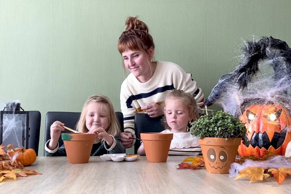 Zien je kinderen het groots? Ze kunnen ook een grotere bloempot beschilderen voor bv. chrysanten. Die kan je dan aan je voordeur of in je tuin plaatsen.