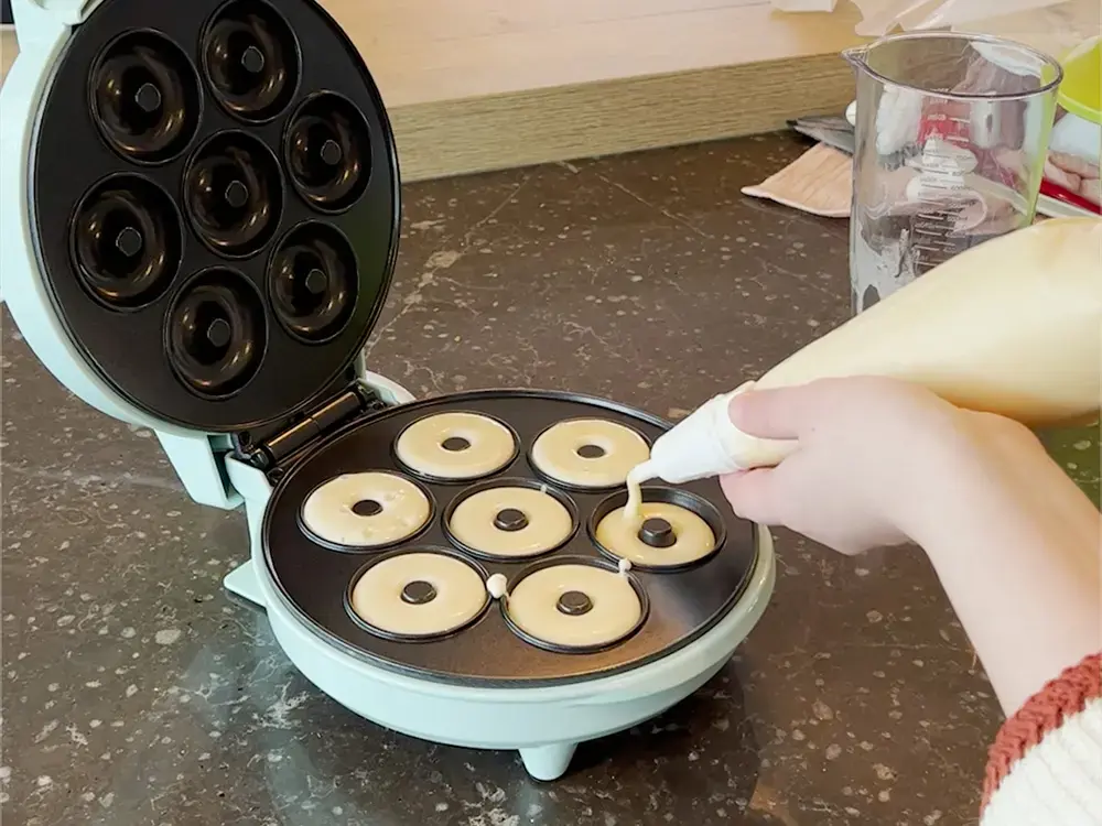 TIP: Giet het deeg in spuitzak om je donutmaker te vullen. Dit gaat sneller, gemakkelijker en zonder morsen!