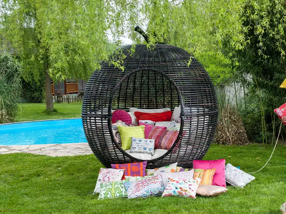Tip: je hoeft geen grote tuin te hebben om op deze trend in te spelen. Werken in de hoogte is namelijk ook helemaal in. Het groene komt terug in je klimop en hangplanten, terwijl de andere natuurlijke kleuren terug te vinden zijn in je houten schutting of het touw dat je heel veelzijdig kan gebruiken.