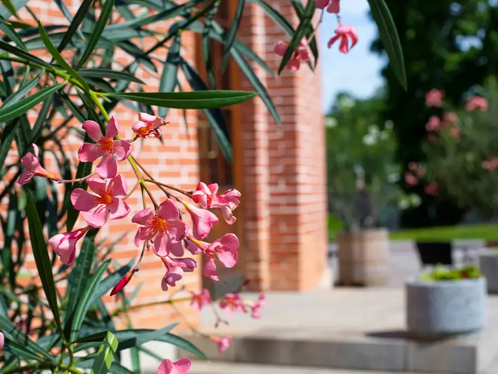 Onder een stralende zon straalt de oleander met zijn betoverende bloemenpracht. Deze exotische schoonheid creëert een zorgeloze zomersfeer in een handomdraai.