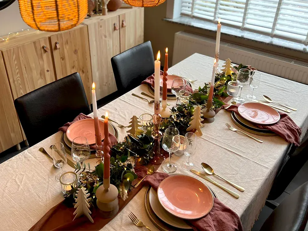 Binnen enkele dagen is het zover: kerst! Het huis is er bijna helemaal klaar voor: de kerstboom is al versierd en zijn lichtjes schitteren tijdens deze donkere dagen. Er ontbreekt nog maar één iets: een prachtige feesttafel waar we gezellig samen kunnen rond plaatsnemen met familie en vrienden. Dit jaar gaan we helemaal voluit met een prachtige guirlande, kaarsen en nog veel meer!