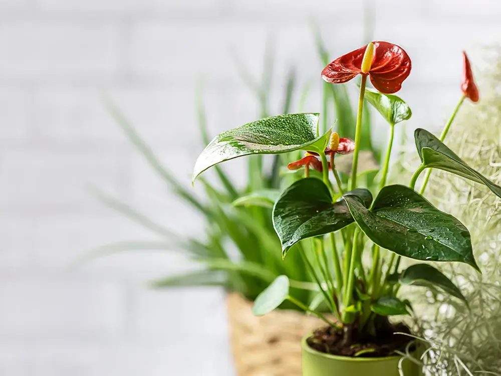 - De Anthurium houdt wel van zon, maar zet hem niet in volle zon. Als de bladeren geel worden, weet je dat hij op een te zonnige plek staat.