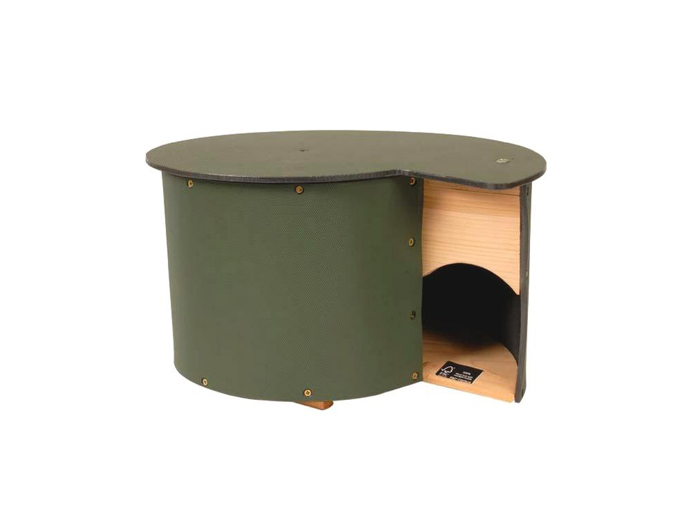 Stijlvol egelhuis in de vorm van een slakkenhuis, een speciaal gebouwde nestkast en schuilplaats voor egels. Het is een ideaal egelhuis voor gewonde egels dankzij het inspectie- en reinigingsluik dat makkelijk te openen is. Help de dalende egelpopulatie met dit stevige egelhuis waarvan de deuropening net groot genoeg is voor onze stekelige vrienden. Deze opening is echter te klein voor roofzuchtige vossen, katten of honden. Een overhangend dak en veranda bieden bescherming tegen de regen.