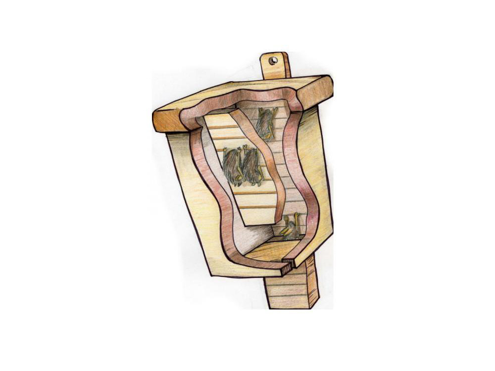Door de verbeterde isolatie van woningen wordt het voor vleermuizen steeds moeilijker om geschikte woonruimte te vinden. Deze dubbelkamerige vleermuizenkast biedt voor verschillende soorten kleine vleermuizen een ideale woonruimte.