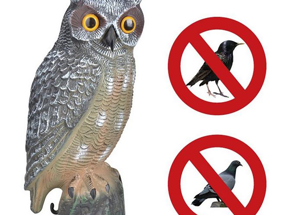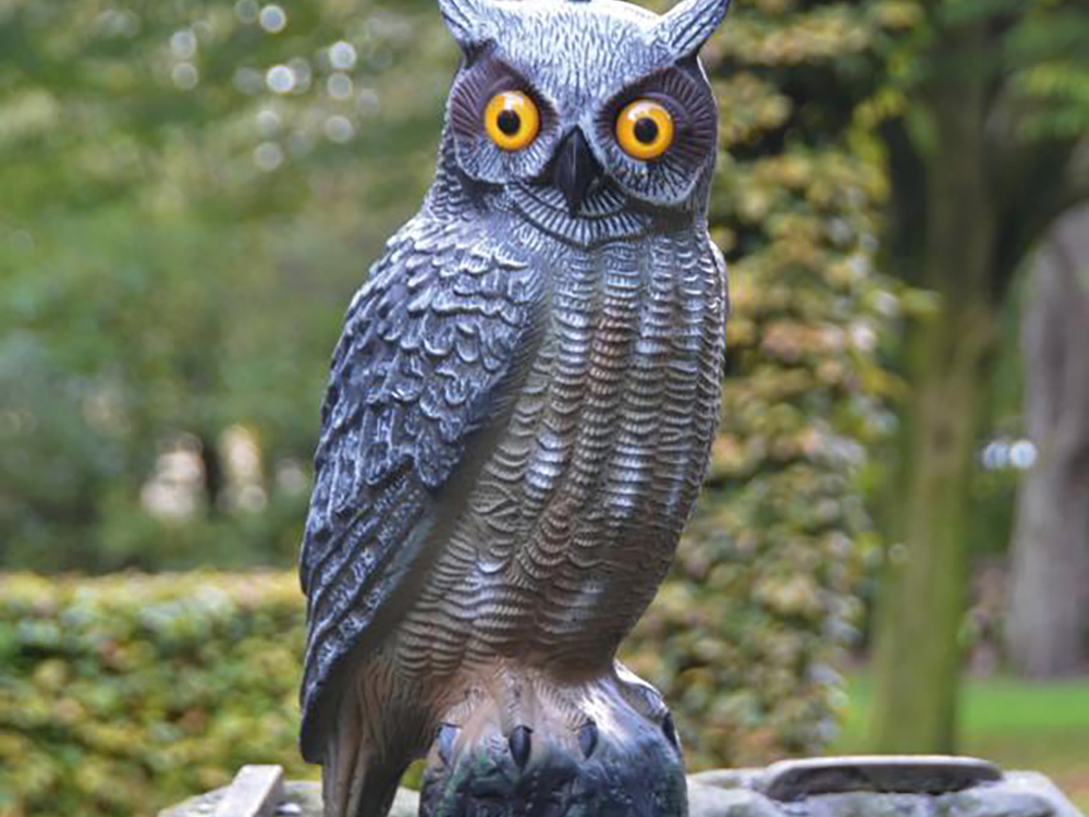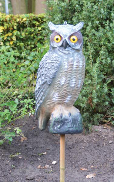 Kleine vogels die zich voeden met groente-, bloemen- of graszaden worden afgeschrikt door de aanwezigheid van deze vogelverschrikker in de vorm van een uil. Plaats de vogelverschrikker op een goed zichtbare plek nabij het te beschermen gebied en verplaats de uil regelmatig om gewenning door de vogels te voorkomen..