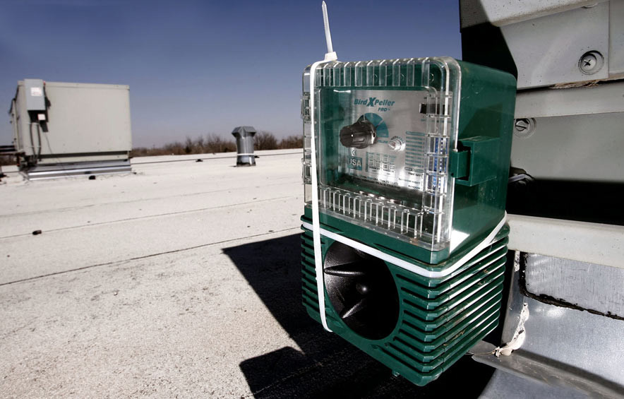 Deze professionele vogelverjager met een bereik tot 6000 m² maakt 8 verschillende geluiden van roofvogels en noodkreten van de te verjagen kraaien. Instelbaar in volume, lengte, soort vogel, tijdklok, willekeurig tijdstip (dag, nacht, 24 uur). De opgenomen vogelgeluiden zijn paniekroepen van kraaien. Wanneer een andere kraai die noodkreten hoort, zal deze snel vluchten omdat ze denkt dat ze in gevaar is. Andere opgenomen geluiden zijn die van roofvogels, waardoor bepaalde vogelsoorten ook zullen vluchten omdat ze gevaar vermoeden.