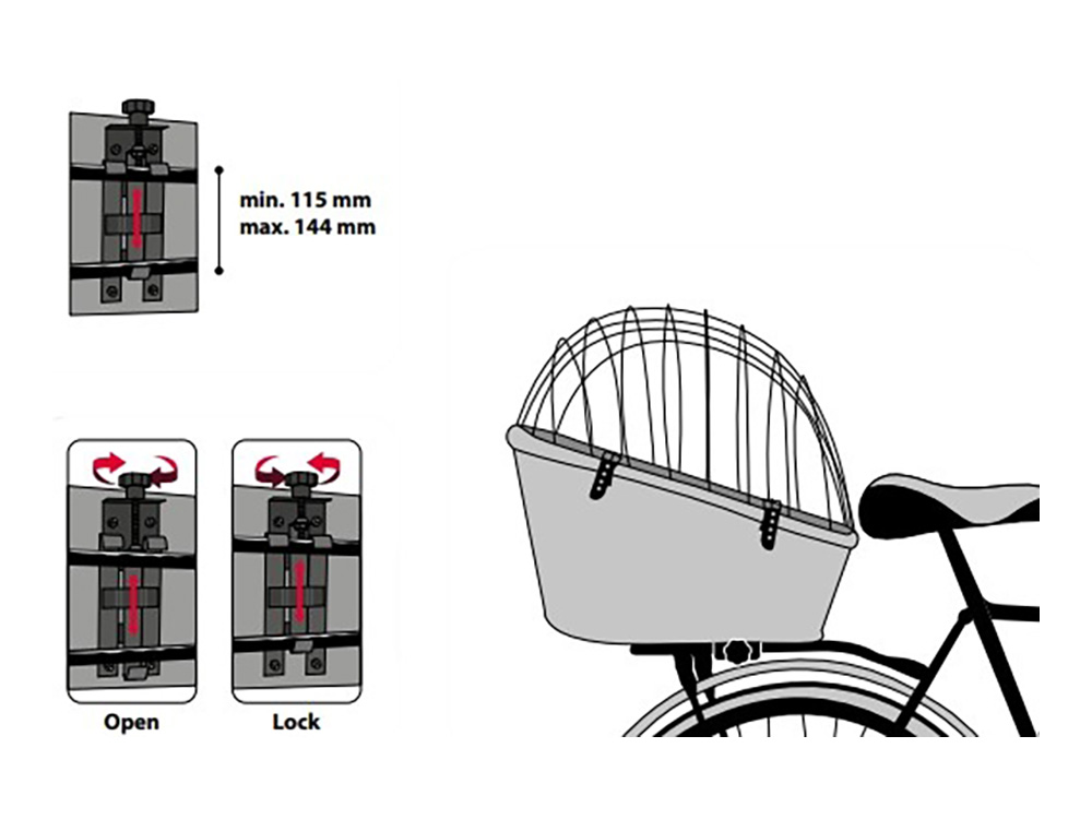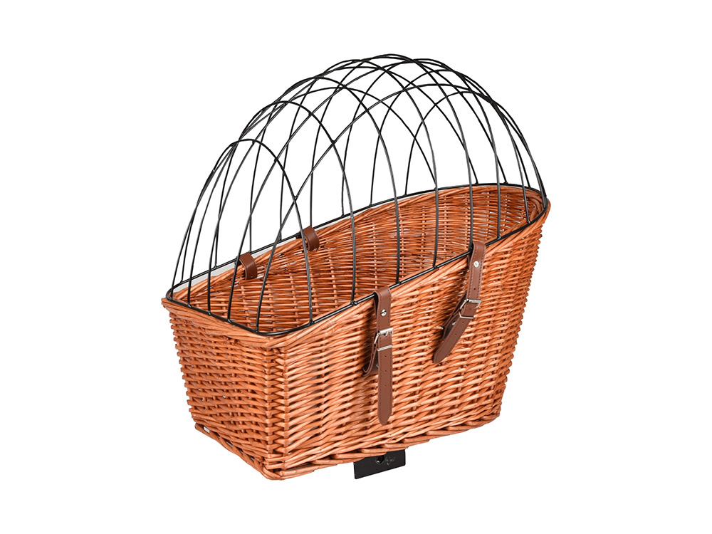 Met deze kwalitatieve fietsmand kan jouw trouwe viervoeter voortaan overal mee op pad. De fietsmand kan op de bagagedrager van jouw fiets worden gemonteerd en is voorzien van een draadkap. Door de kap kan je de hond veilig vervoeren terwijl hij toch om zich heen kan kijken.