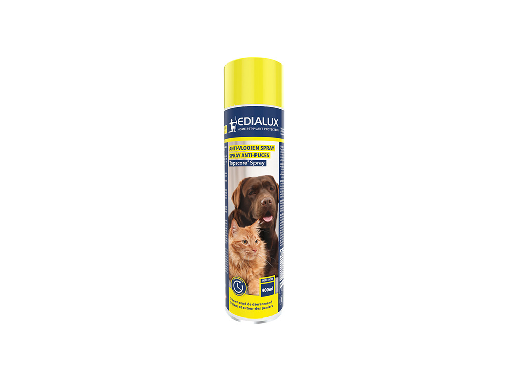 Krachtige spuitbus tegen vlooien in en rond de manden van honden en katten. Met zeer snelle aanvangswerking en lange nawerking zodat vlooien jouw huidier niet langer belagen.