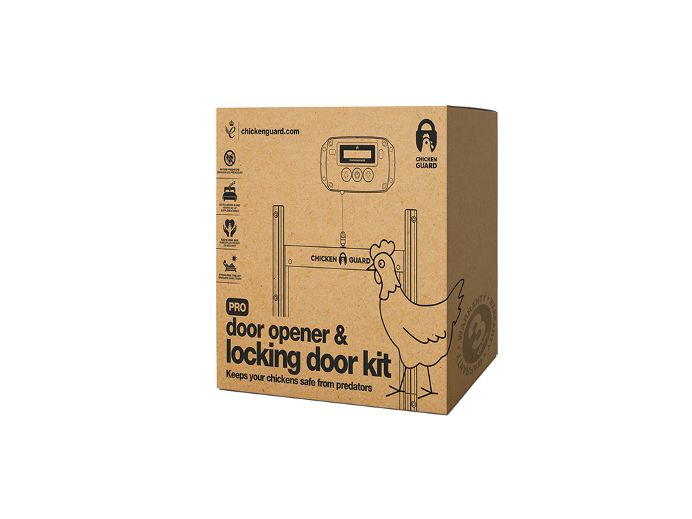 Deze versie van Chickenguard Pro is een zelfsluitende deurkit voor kippen- of pluimveehokken. Het bevat een automatische deuropener en een bijhorende aluminium schuifdeur die 's nachts de kippen beschermt tegen vossen en andere nachtelijke rovers. De zelfsluitende deur heeft innovatieve zelfsluitende vleugels. Zo voorkom je dat de klauwen van roofdieren de kippenhokdeur openen.