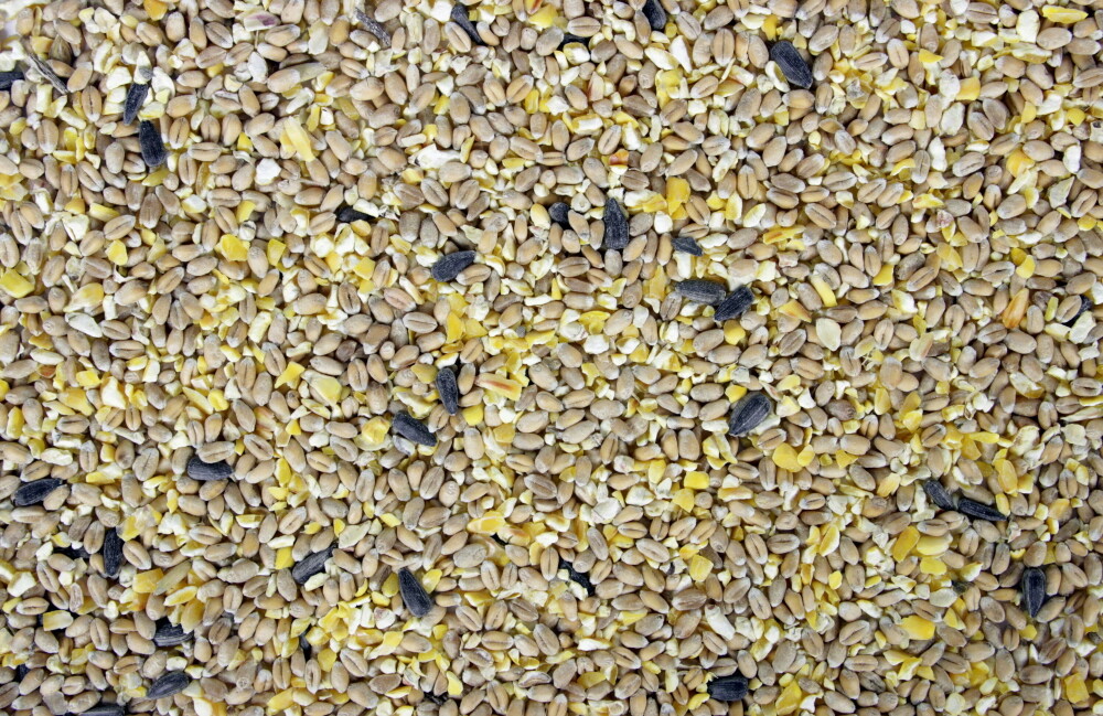 - Gewaarborgde samenstelling: Eko tarwe, eko mais (gebroken), eko zwarte zonnepitten.