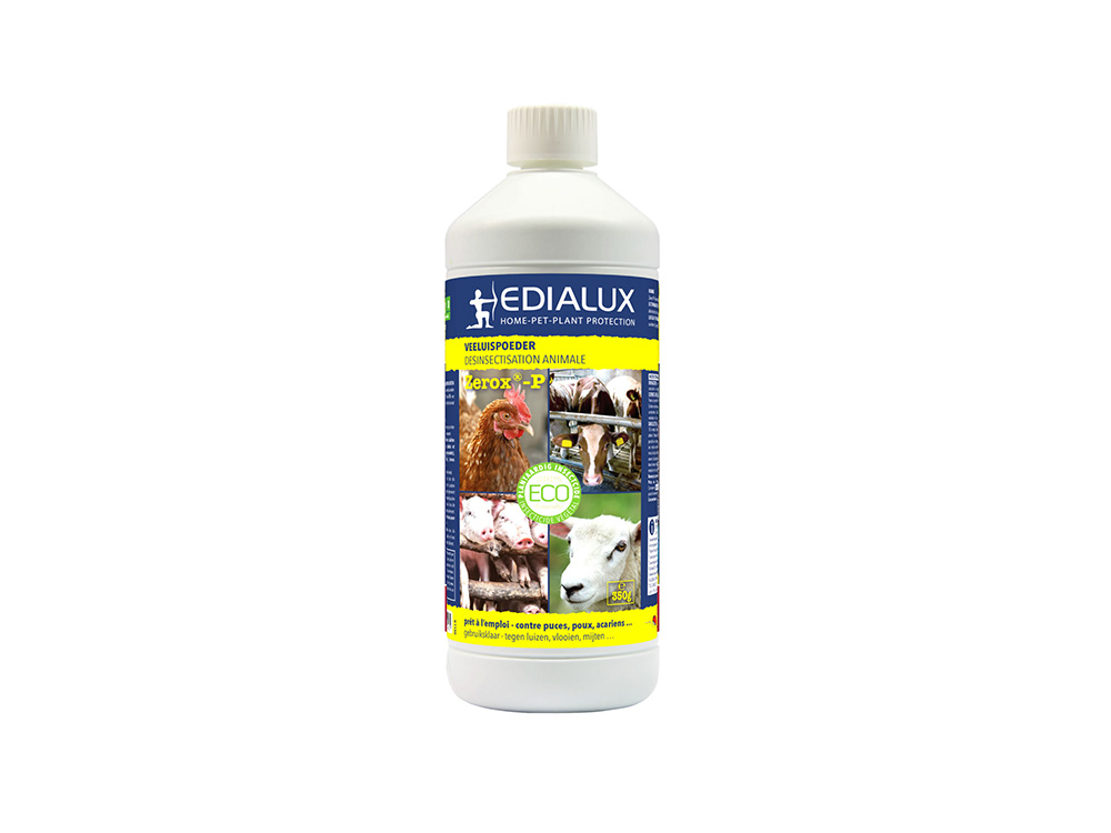 Zerox-P is een gebruiksklaar insecticide poeder tegen bloedluizen, mijten en vlooien op basis van pyrethrum, een plantaardig extract dat gewonnen wordt uit een chrysantensoort. Het wordt gebruikt voor de bestrijding van ectoparasieten in hokken en stallen van jonge en volwassenen runderen, paarden en pony's, pluimvee zoals kippen, varkens, schapen, geiten en konijnen. Breng het poeder in dunne lagen op de plaatsen waar de ectoparasieten voorkomen.