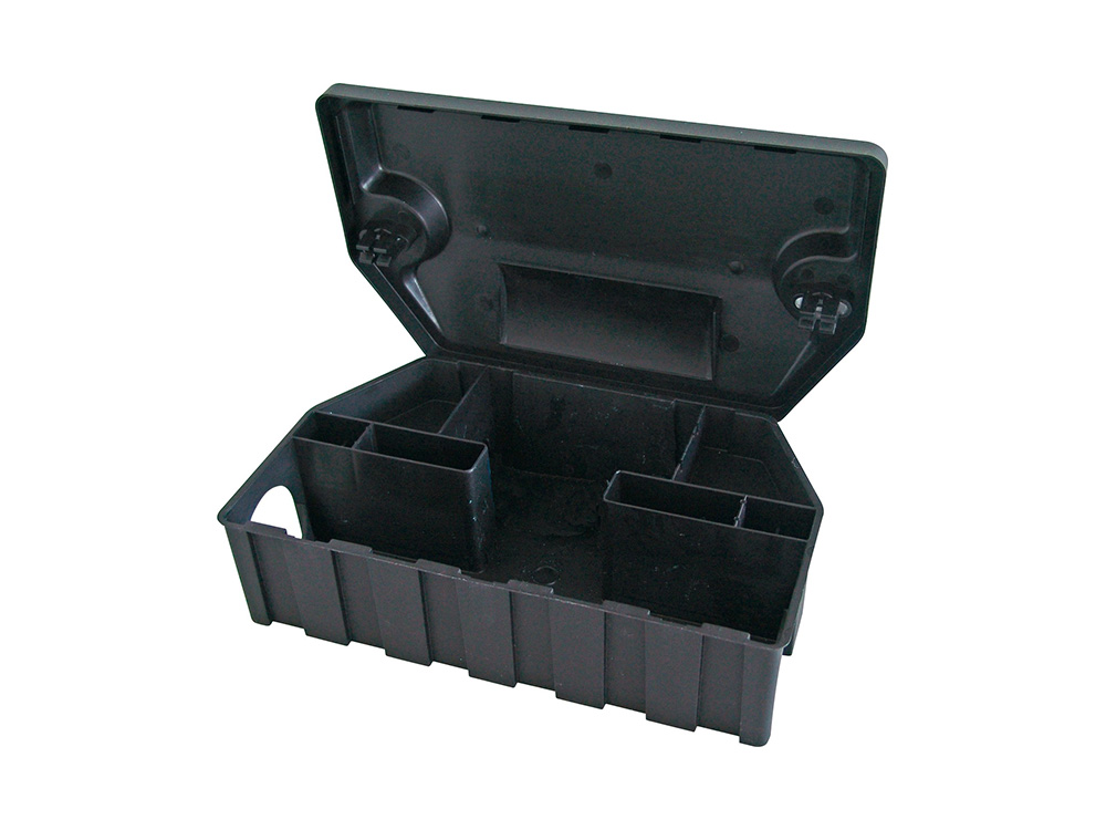 Professionele rattenvoederdoos van hoogwaardige kwaliteit in harde kunststof (ABS). Deze lokdoos is zeer licht en stevig en bovendien goed beveiligd met een dubbel slot. De veilige box is voorzien van een uitneembaar voederbakje voor lokaasgraan of pasta. Er zijn speciale houderstaafjes voorzien om geperste paraffine blokjes vast te houden.