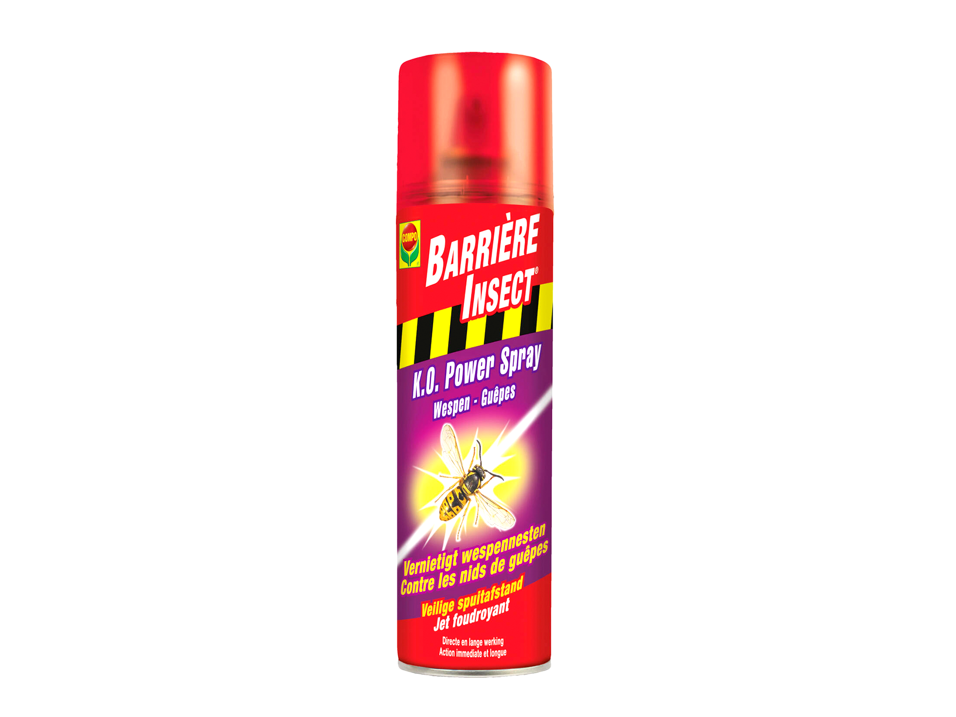 Barrière Insect K.O. Power Spray Wespen & Hoornaars is een handige, gebruiksklare spuitbus voor de doeltreffende bestrijding van wespen, Aziatische hoornaars en wespennesten. Dankzij de krachtige spray-jet kan je een nest vanop veilige afstand behandelen, wat zorgt voor extra gebruiksgemak en veiligheid.