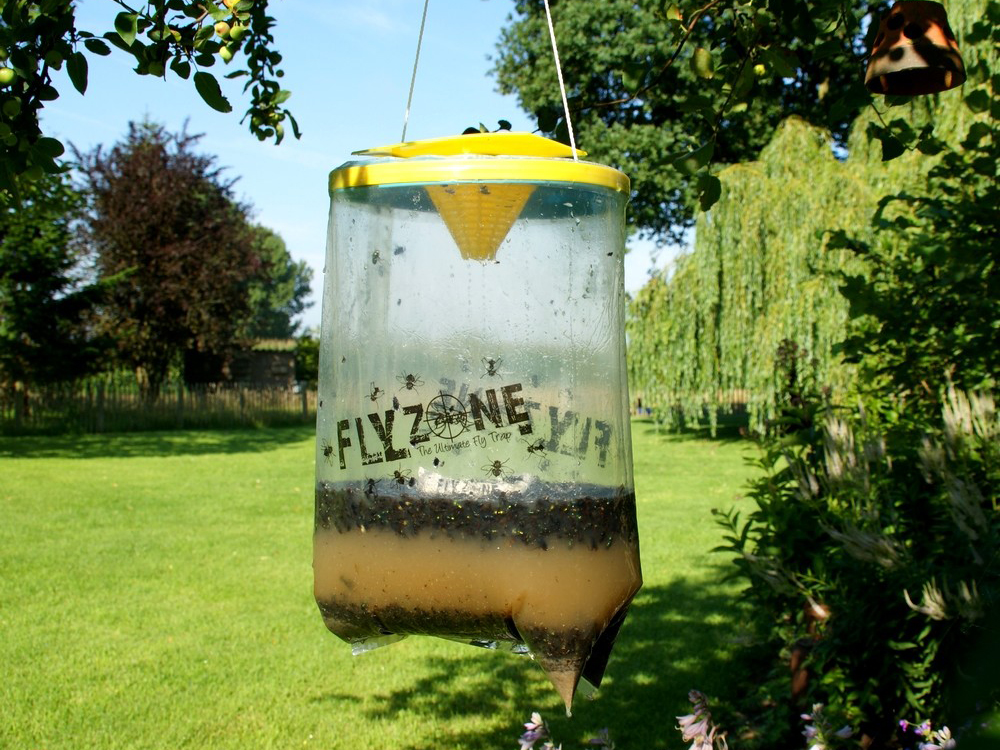 Niets is lastiger dan vliegen die je aan tafel komen verstoren. Om buiten deze lastige ‘tafelgenoten’ weg te houden is er dit zelf onderhoudend systeem dat enkel regelmatig moet bijgevuld worden met water. Een vliegenzak buiten zorgt ook voor opmerkzaam minder vliegen binnenshuis.