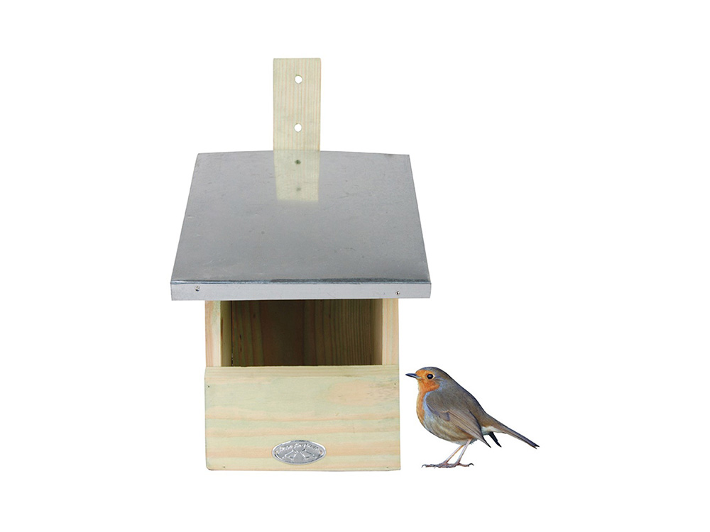De nestlast is gemaakt uit grenenhout en is voorzien van een zinken dak om het hout te beschermen tegen allerlei weersinvloeden. Dankzij de voorziene ophanglat hang je de half open nestkast makkelijk op.