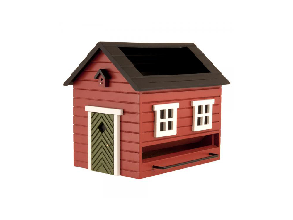 Om het voederhuis te vullen met zaden en andere lekkernijen kan het dak opgetild worden. In het dak, dat gemaakt is van vorstbestendig kunststof, is er ruimte om vers water aan te bieden.