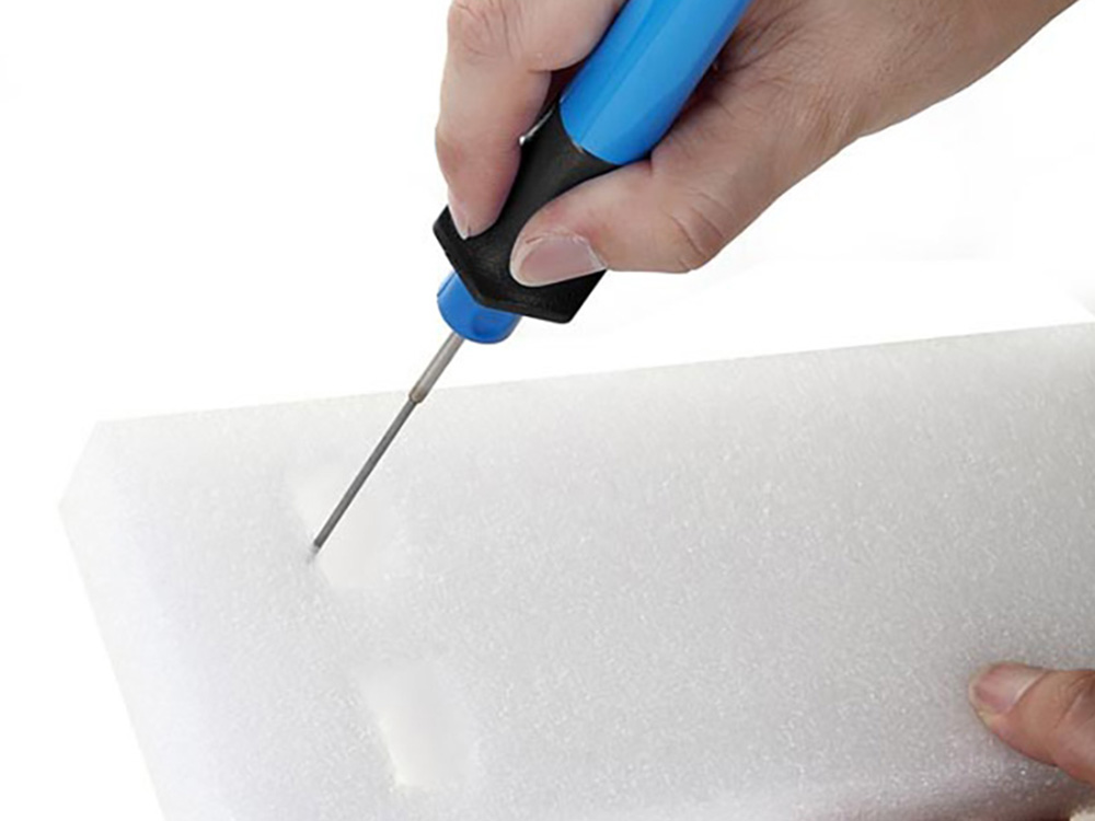 Piepschuimsnijder met 3 verschillende stiften: een gloeidraad, een graveerstift en een warm snijmes.Dit toestel heeft een zeer snelle opwarmtijd van ongeveer 10 seconden en is geschikt voor het snijden van alle types polystyreenschuim. Ideaal om sierlijsten, hobbyprojecten... te snijden.