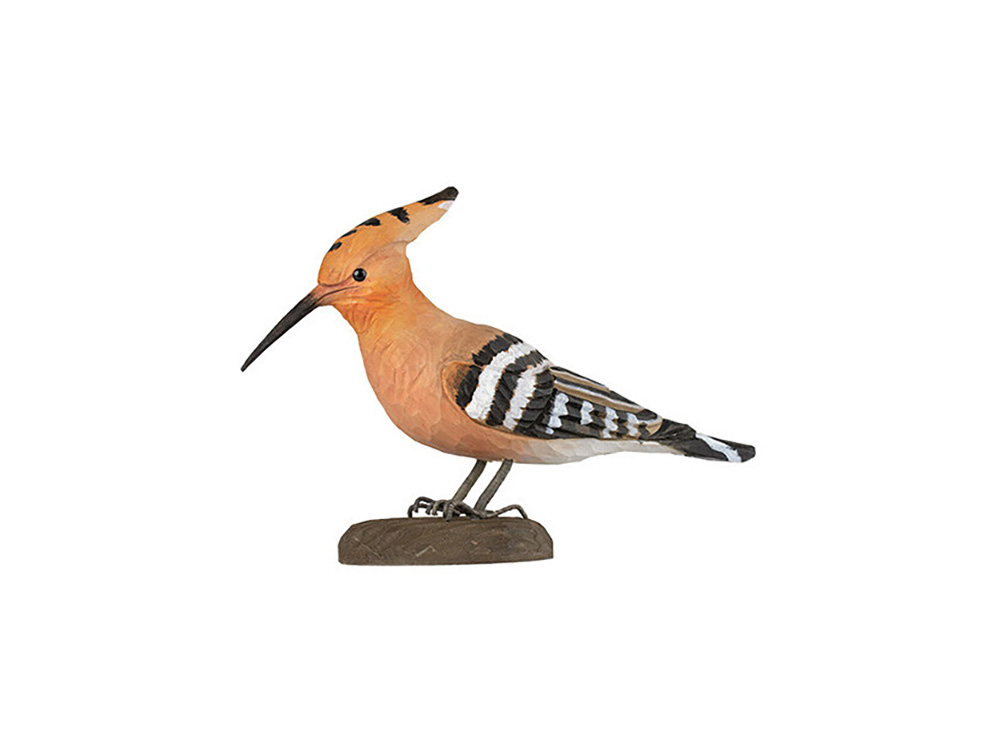 Ambachtelijk vormgegeven houten Europese hop (Upupa epops). De hop wordt levensecht weergegeven en is beschilderd met milieuvriendelijke verf.