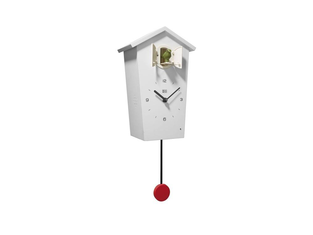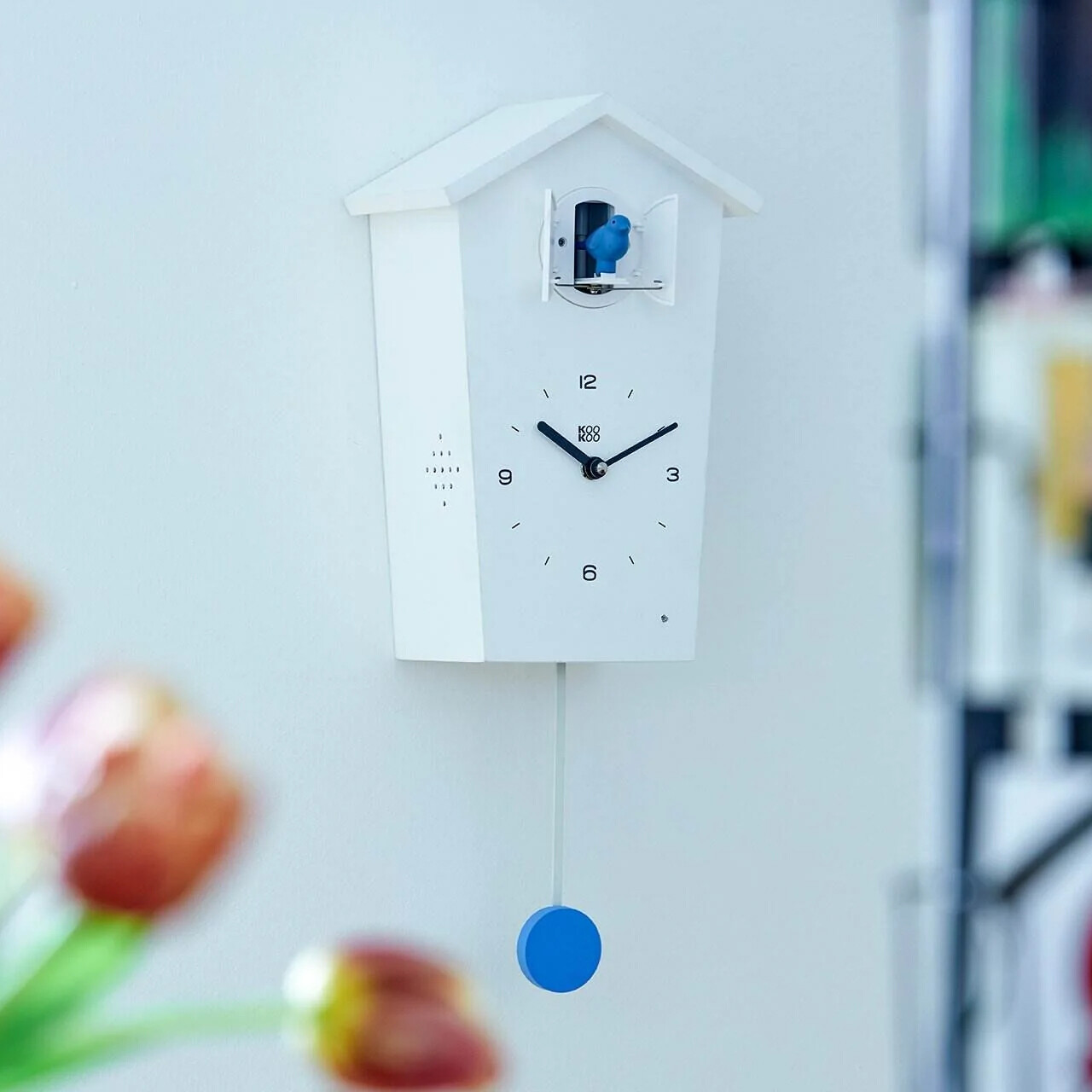 Superleuke, moderne koekoeksklok met slinger van het Duitse merk KooKoo. Het design is duidelijk, strak en puur! Elk uur komt er een vogel naar buiten en roept een of meerdere keren, afhankelijk van het uur. Je kan daarbij kiezen uit 12 authentieke vogelgeluiden of de roep van een koekoek. Een ingebouwde lichtdetector zorgt voor een stille nacht in de BirdHouse klok.