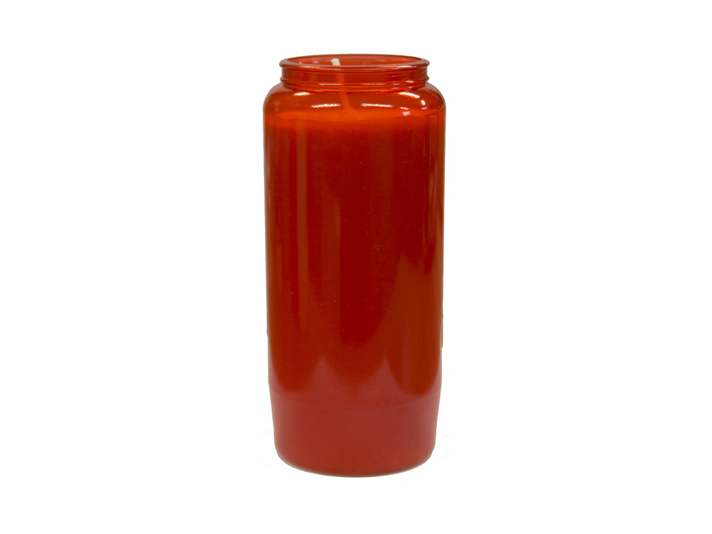 Dit is een gemiddelde versie van de echte noveenkaars en brandt 6 dagen en nachten. Deze witte noveenkaars zit in een rode doorzichtige kunststof houder.