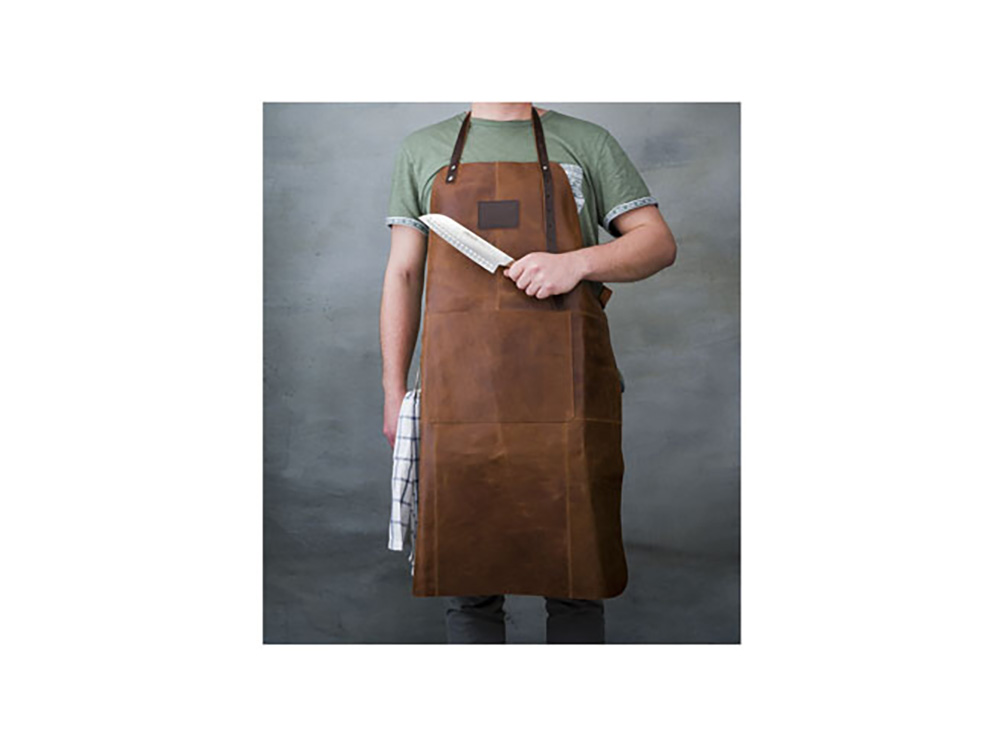 Lederen barbecueschort met verstelbare band aan de nek, alsook aan de zijkant. Deze schort is onmisbaar voor elke barbecueliefhebber. De schort beschermt jouw kleding tegen hitte en de vuurspetters en gaat jarenlang mee door de hoge kwaliteit van het leer. Daarnaast is de schort voorzien van een handdoekhouder, een metalen ring aan de zijkant van de schort.