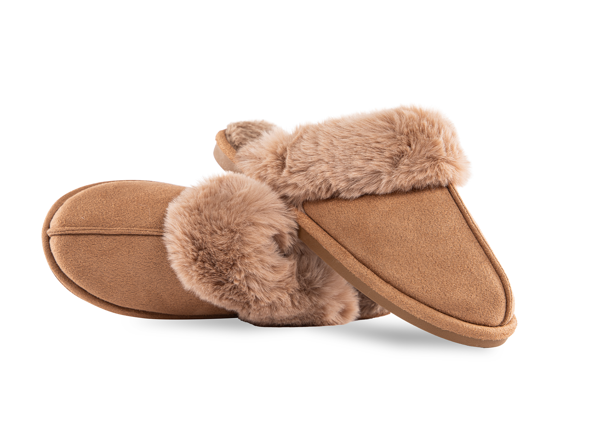 SNUGGS pantoffels – warme en stijlvolle pantoffels van suède met imitatiebont, perfect voor ontspannen avonden thuis. Verkrijgbaar in beige, greydark, cognac & taupe.