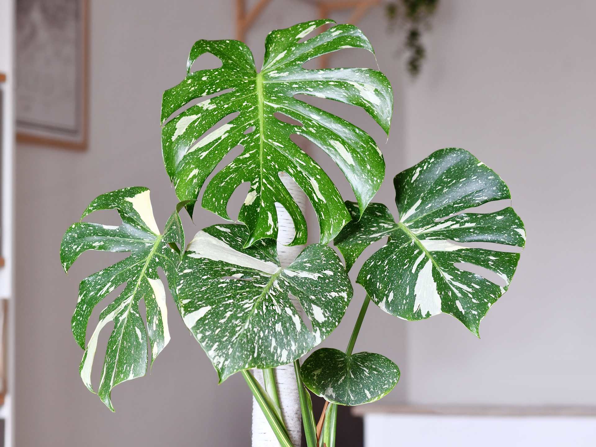 Monstera Thai Constellation – tropische kamerplant met unieke crème-witte bladvlekken voor een opvallend accent.