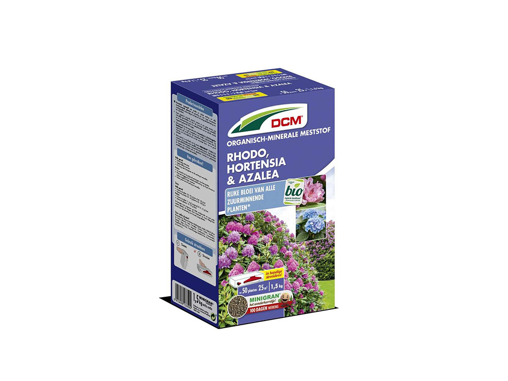 Organische meststof van DCM met een specifieke samenstelling voor het bemesten van alle zuurminnende planten zoals azalea, rhododendron, hortensia, skimmia, heide, camelia,... Extra magnesium en ijzer zorgen voor glanzende en groene bladeren.