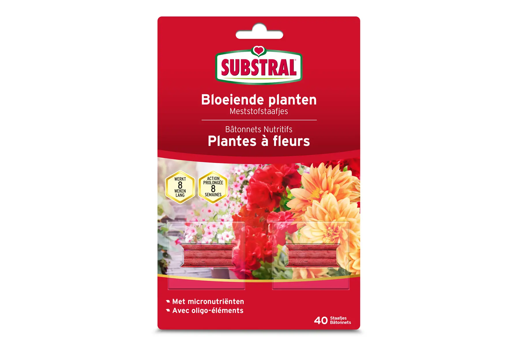 Voorgedoseerde Substral voeding voor bloeiende planten. Bevat alle elementen en micro-nutriënten die onontbeerlijk zijn voor een evenwichtige groei en voor de verzorging van bloeiende planten. Door deze meststof verkrijg je planten die meer weerstand hebben, uitbundiger en kleurrijker bloeien.