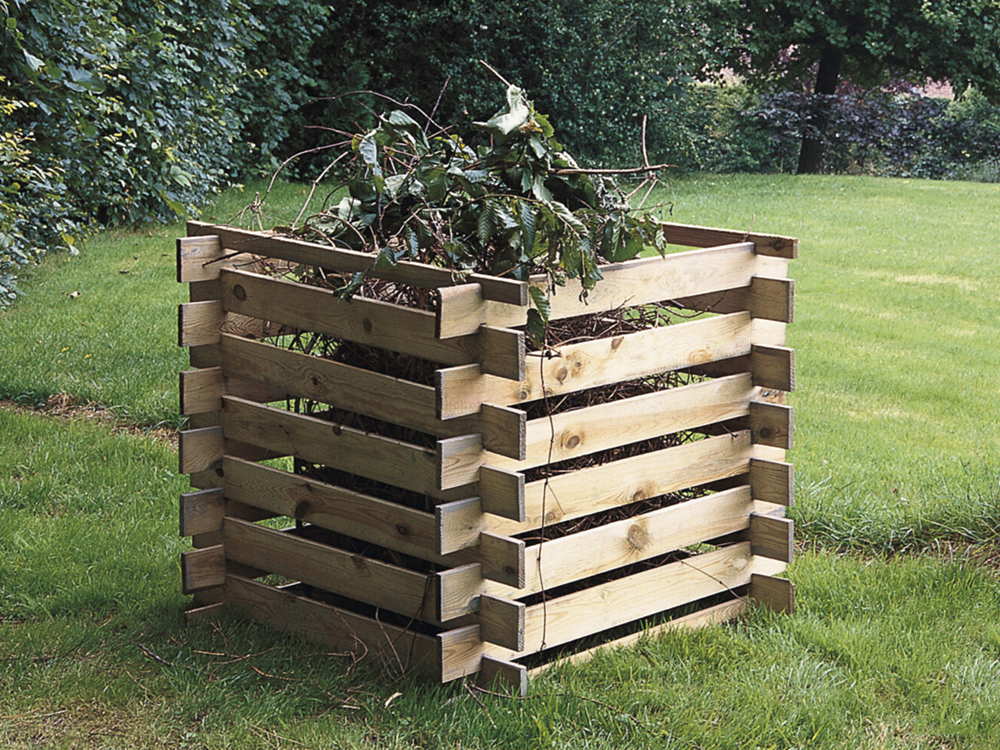 Compostbak in grenenhout voor het verwerken van tuin- en keukenafval. De afzonderlijke planken passen in elkaar via een tand- en groefsysteem waardoor deze compostsilo zeer snel kan worden opgebouwd.