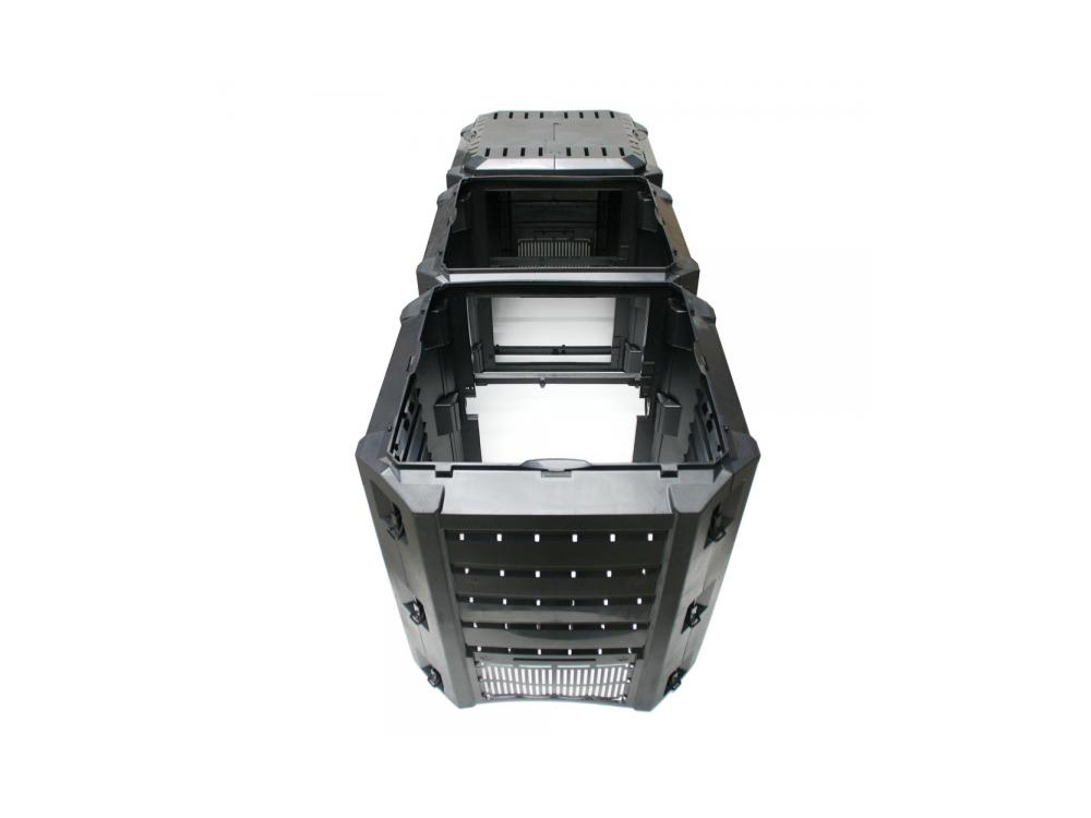 Dit compostsysteem bestaat uit drie aan elkaar geschakelde compostvaten waardoor het een grote capaciteit van maar liefst 1200 liter kan verwerken.