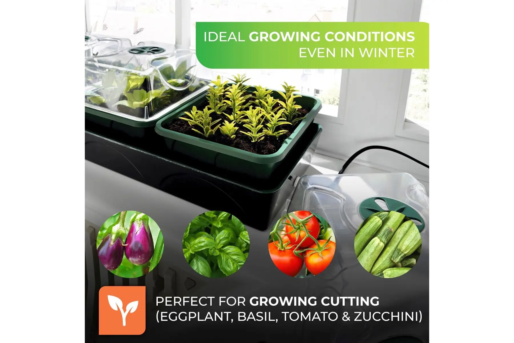 Zaai en stek succesvoller met deze driedelige kweekkas met bodemverwarming en waterreservoir. Het is een eenvoudig te gebruiken elektrische kweekkas voorzien van een energiezuinige verwarmde bodem en aangegoten stekker met elektriciteitssnoer van 190 cm. Deze driedelige kweekbak met verwarmde bodem en waterreservoir met capillaire mat is een must voor elke plantenkweker.