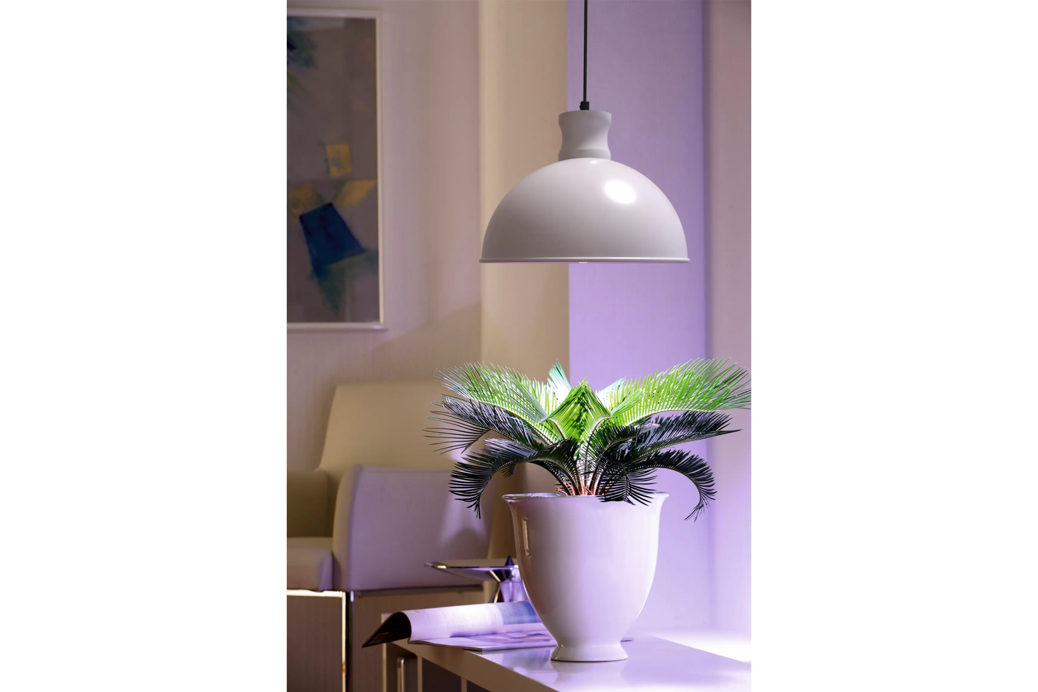 De moderne, metalen hanglamp past dankzij zijn eenvoudige ronde vorm, in alle woonruimtes. Plantaramaturen gaan doorgaans 1000 uur mee, terwijl deze groeilamp een extreem lange levensduur heeft van 30.000 uren. Het zeer lage stroomverbruik van slechts 6,5 W bij dezelfde lichtsterkte van een gloeilamp van 60 W zorgt voor een grote energiebesparing. Dit bespaart je niet alleen kosten maar het is ook beter voor het milieu.