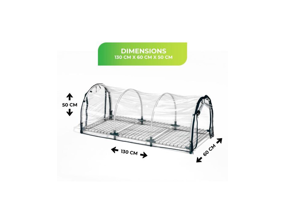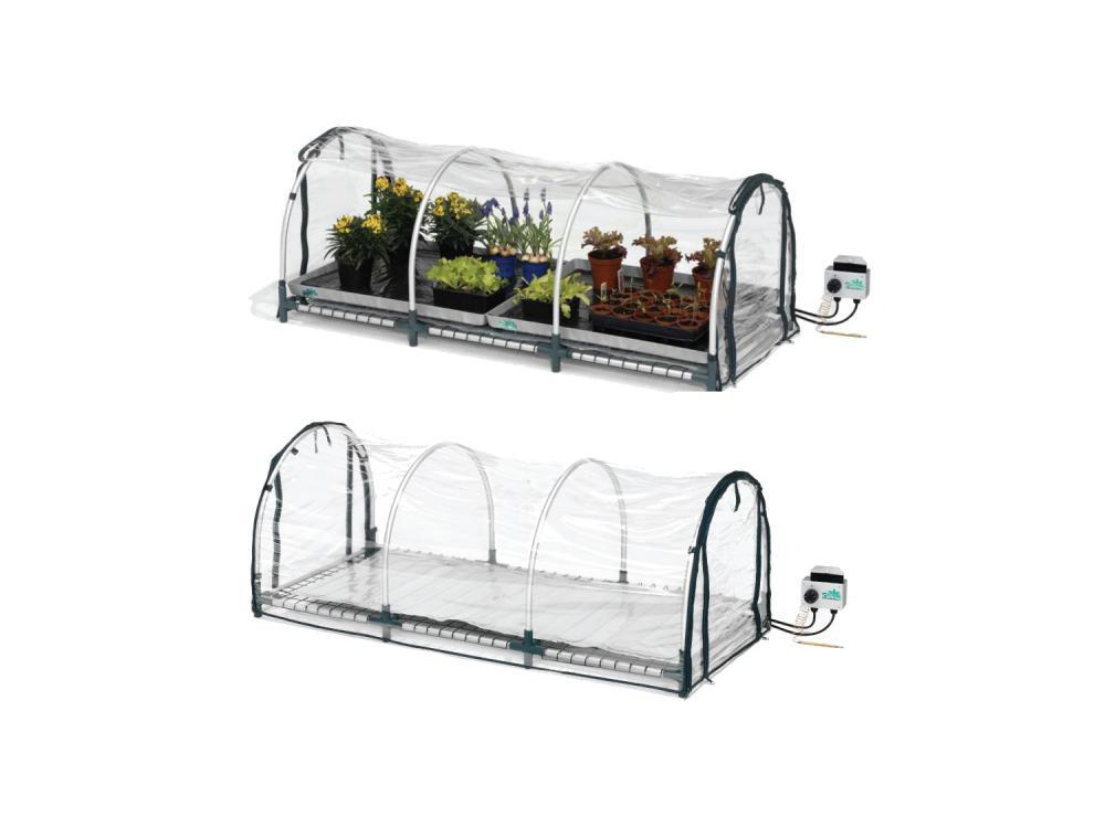 De verwarmingsmat genereert gelijkmatige warmte langs onder die een snelle en sterke groei van zaden en stekken bevordert. De kas is voorzien van verstelbare ventilatiezijkanten met ritssluiting.