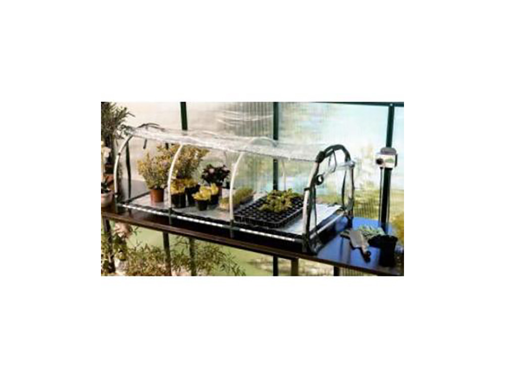 De stevige, hoge kweekkas met aluminium frame is ontworpen volgens de noden van de tuinliefhebber die zelf zijn planten wil zaaien, stekken, kweken of vermeerderen. De kweekkas is compleet met thermostaat en verwarmingsmat (snoer 120 cm en max. 150W), met een nauwkeurig temperatuurbereik van 0 tot 40 °C en externe thermostaat-voeler.