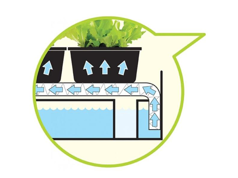 De bodem is voorzien van een waterreservoir van 8 liter. Het meegeleverde vloeidoek zorgt er voor dat de potten en bakjes die erop staan automatisch van water voorzien worden gedurende een langere periode. Er worden eveneens 4 kwalitatieve zaaibakjes meegeleverd.