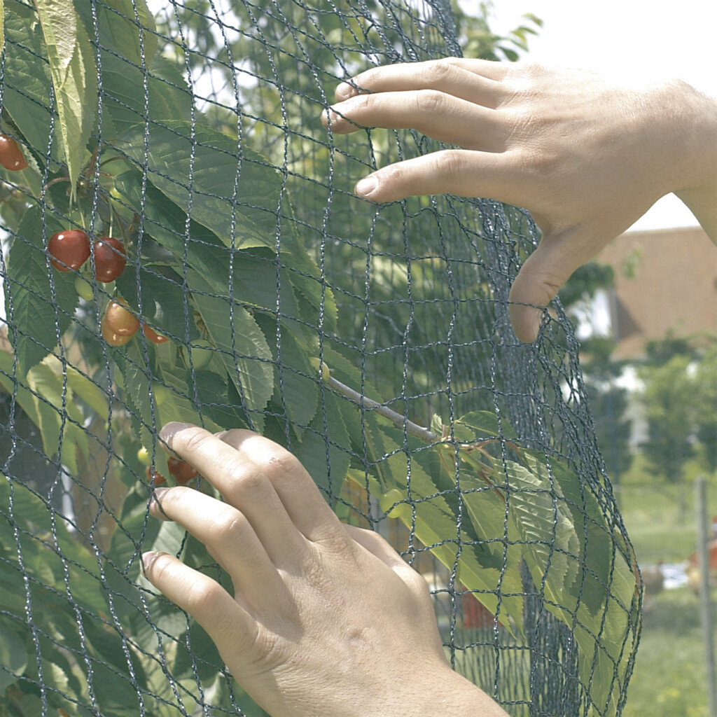 Geweven vogelnet voor het beschermen van fruitbomen en moestuin gewassen. Van zodra het fruit begint te rijpen zijn verschillende tuinvogels er als de kippen bij. Bescherm jouw oogst met dit tuinnet. Ook geschikt voor het afdekken van kippenrennen of andere pluimveeverblijven bij ophokplicht omwille van de vogelgriep.