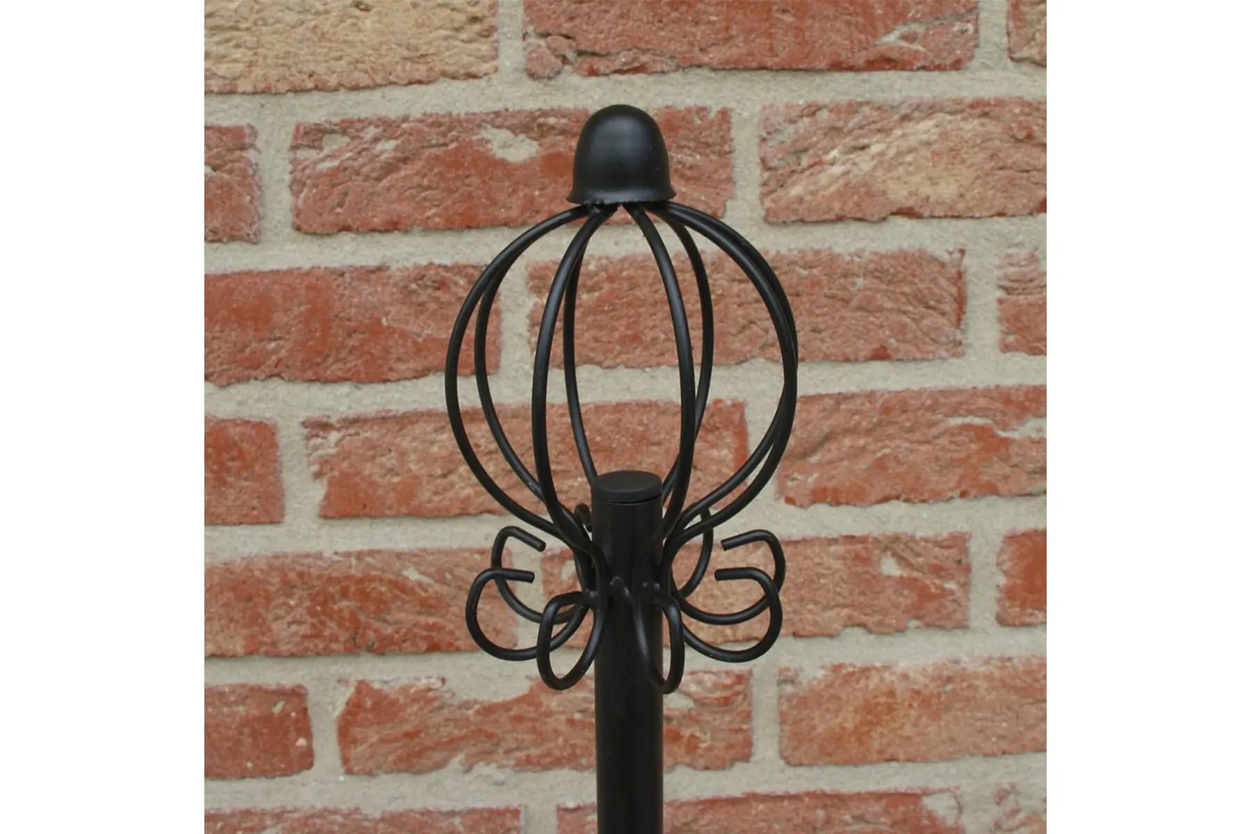 Deze elegante en veelzijdige klimsteun in piramidevorm voor klimplanten ziet er geweldig uit. De metalen paal met stevige grondpin onderaan en sierlijk topstuk bonenaan, kan vlot gemonteerd worden.