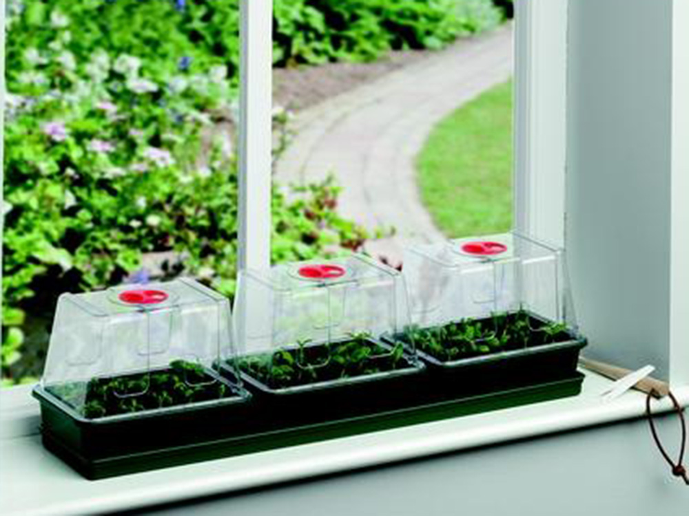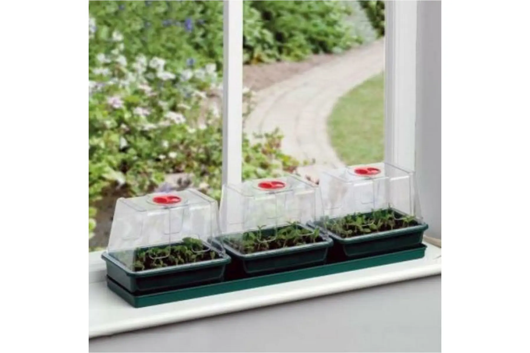 Kweek bloemen, groenten of kruiden in drie afzonderlijke units. Deze propagator is een complete kwekerij voor op de vensterbank. De totale kweekkas is voorzien van drie afzonderlijk geventileerde kweekbakjes, ideaal voor zaaigoed of het bewortelen van stekken. Het unieke formaat van deze kweekkasjes voorkomt de productie van teveel aan zaailingen.
