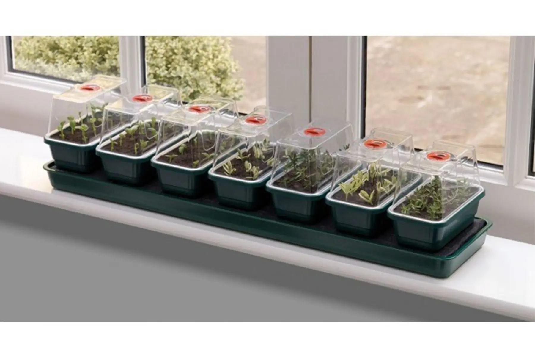 Kweek bloemen, groenten of kruiden in afzonderlijke kasjes. Deze 7-delige kweekkas is een complete kwekerij voor op de vensterbank. Het unieke formaat van de mini-kweekkasjes voorkomt de productie van teveel zaailingen. De kans op ziektes is hierdoor ook kleiner omdat ze een geïsoleerd kweekklimaat bieden. De kans op besmetting tussen de verschillende plantensoorten verkleind drastisch.