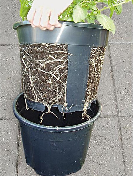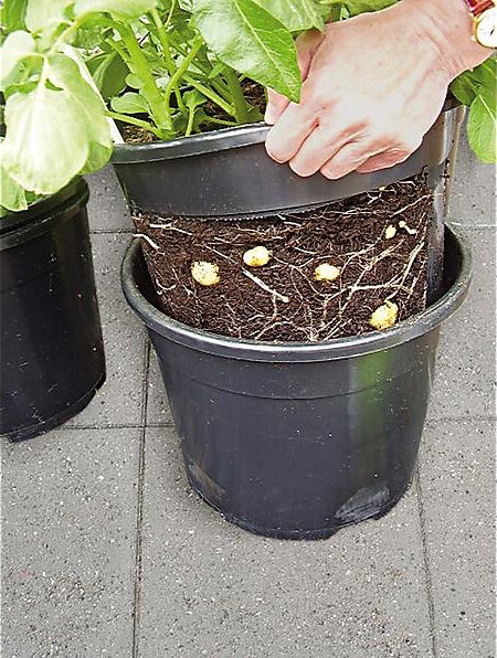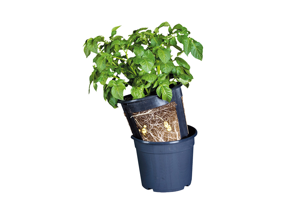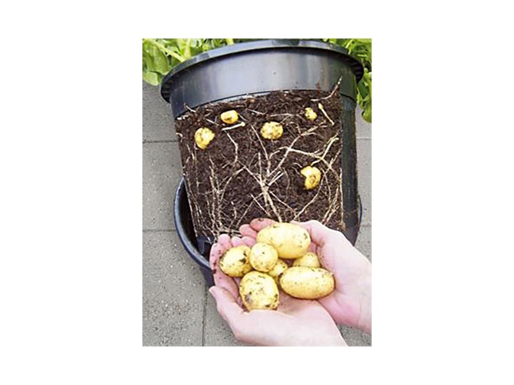 Plaats de pootaardappelen in moestuingrond en volg hun groei door de binnenpot omhoog te tillen. Oogst de aardappelen zodra ze groot genoeg zijn door de binnenpot eruit te halen. Dankzij de dubbelwandige pot ontstaan er geen ziektes en schimmels door goede luchtcirculatie.