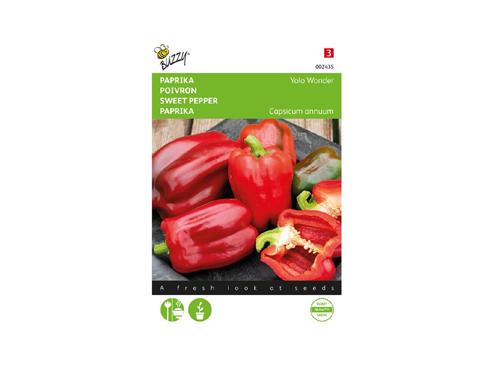 Paprika Yolo Wonder begint groen, maar kleurt rood als je hem langer aan de plant laat hangen. Je kunt ze echter ook al oogsten in het groene stadium. De vruchten zijn vrij vierkant van vorm. Dit ras is zowel geschikt voor teelt onder glas als in de volle grond.