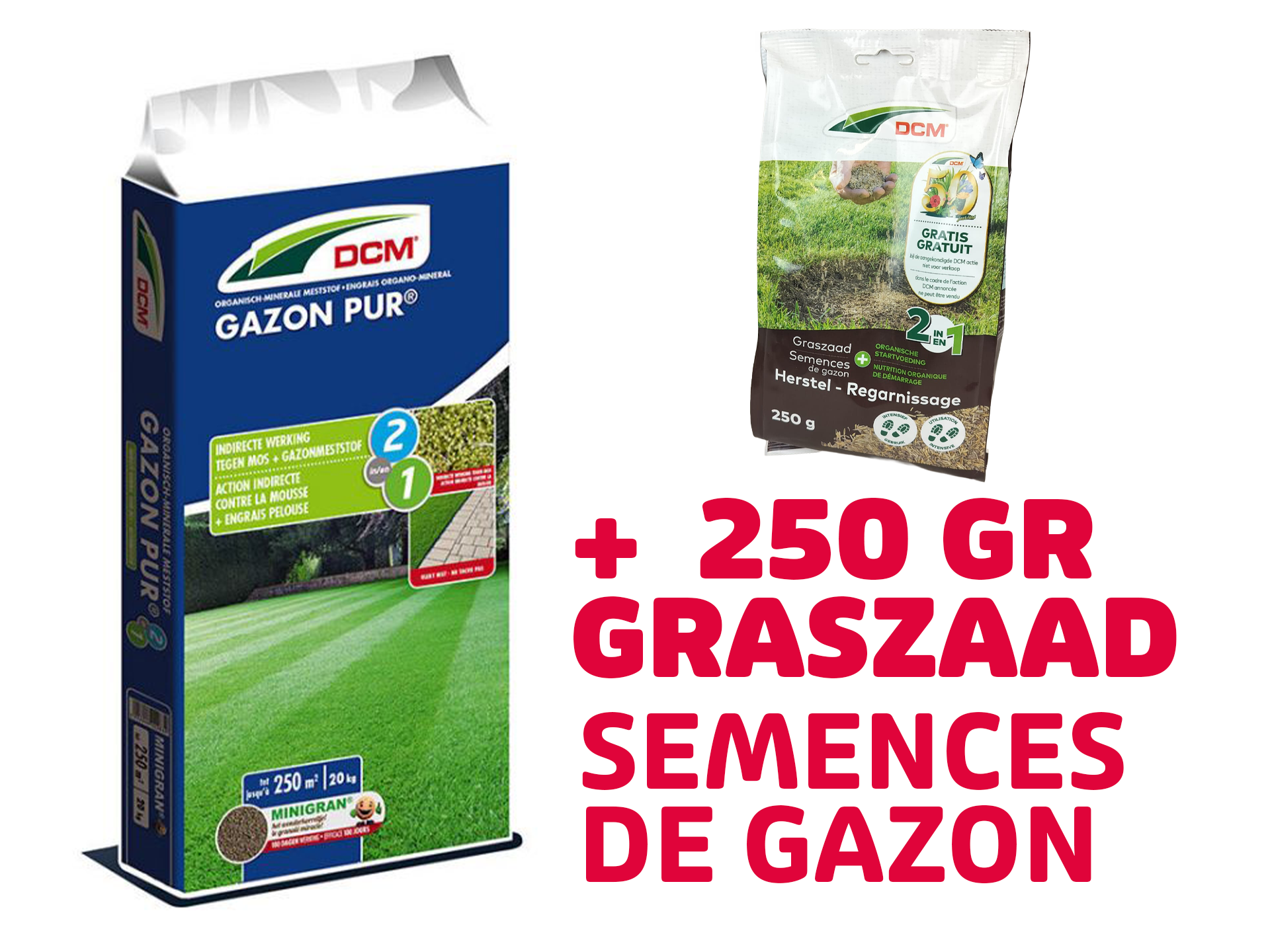 DCM gazonacties 20 kg – Gazon Pure met gratis graszaad of All-In-One met €6 cashback.