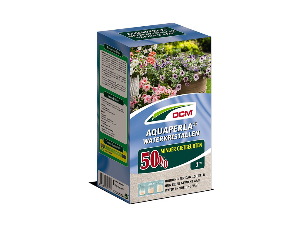 DCM Aquaperla watergelkristallen meng je eenvoudig door de potgrond. Ze absorberen tot 100 keer hun gewicht aan water, waardoor de potgrond een enorme waterbuffer krijgt voor je planten. De kristallen geven het water terug af op het moment dat de planten dit nodig hebben waardoor ze tijdens warme, zonnige dagen veel langer fris blijven en minder gietbeurten nodig hebben.