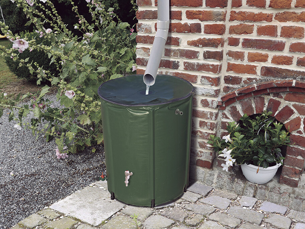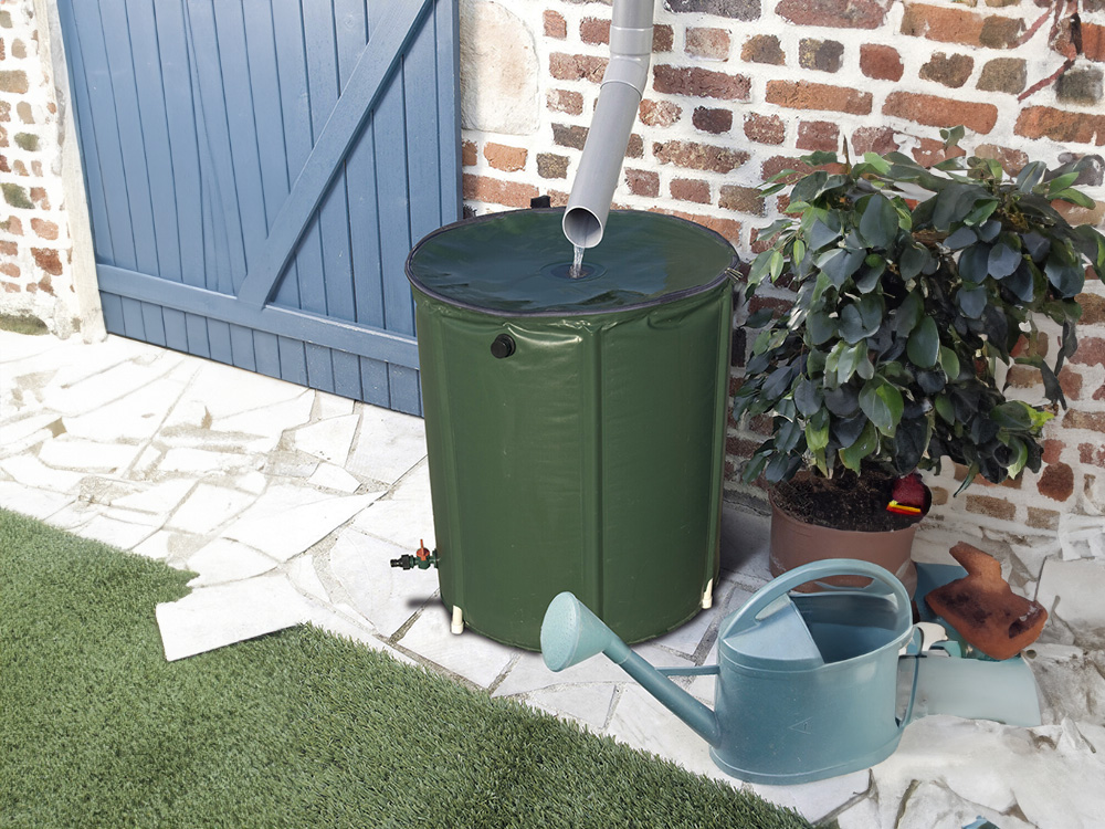 De opvouwbare watertank is de ideale oplossing voor het opvangen van regenwater van daken van tuinkassen en tuinhuisjes. Het opgevangen water kan onder meer gebruikt worden om planten water te geven. Langs het afritsbare deksel kan je makkelijk emmers vullen, en aan de onderzijde is er tevens een aftapkraantje voorzien. In het deksel bevindt zich een aansluitpunt voor de regenpijp. Een bladzeef zorgt ervoor dat bladeren en dergelijke niet in de watertank terecht komen. Ook is er een opening aan de zijkant voor het toevoegen van water via een tuinslang of andere leiding of voor het koppelen van meerdere vaten. In de winter, als de tank niet wordt gebruikt, kan je hem compact opbergen tot het volgende seizoen.