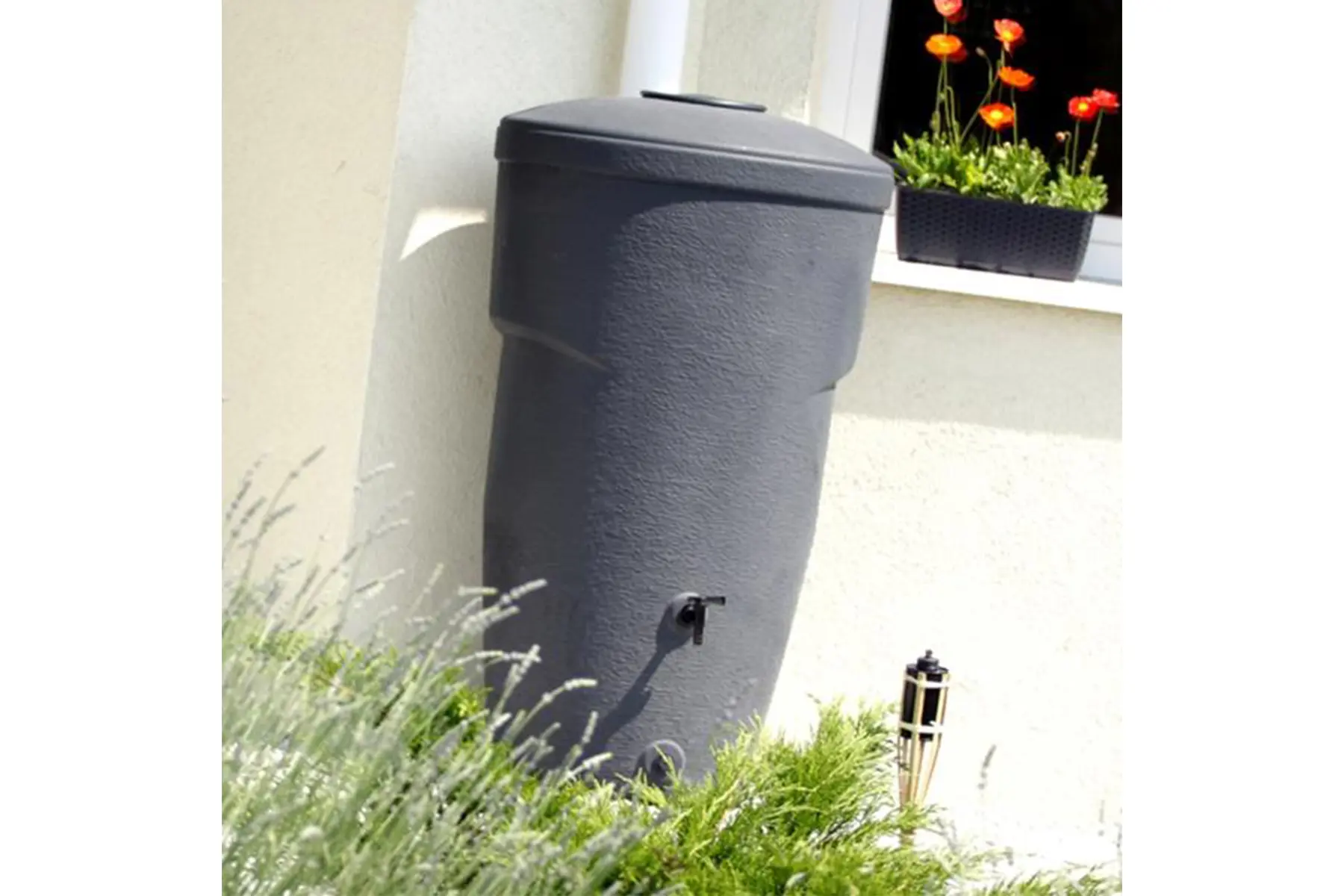 Mooie decoratieve kunststof regenton voor de opvang van regenwater. Deze kwalitatieve regenton heeft bovenin een opening met deksel van Ø 18,5 cm. Ze is gemaakt uit duurzaam, UV-bestendige kunststof en ziet er net uit als een moderne vaas met een ruw afgewerkte structuur.