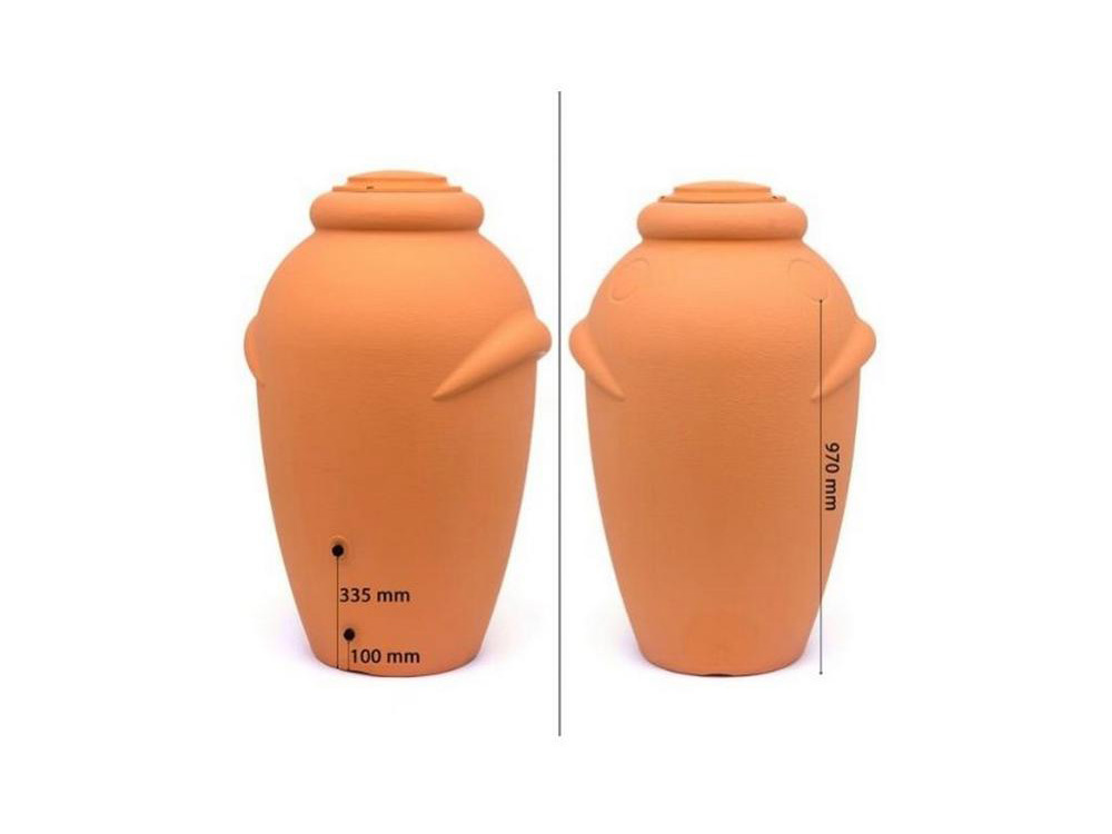 Mooie decoratieve kunststof regenton voor de opvang van regenwater. Deze kwalitatieve regenton heeft bovenin een opening met deksel van Ø 26 cm. Ze is gemaakt uit duurzaam, UV-bestendige kunststof en ziet er net uit als een grote waterkruik.